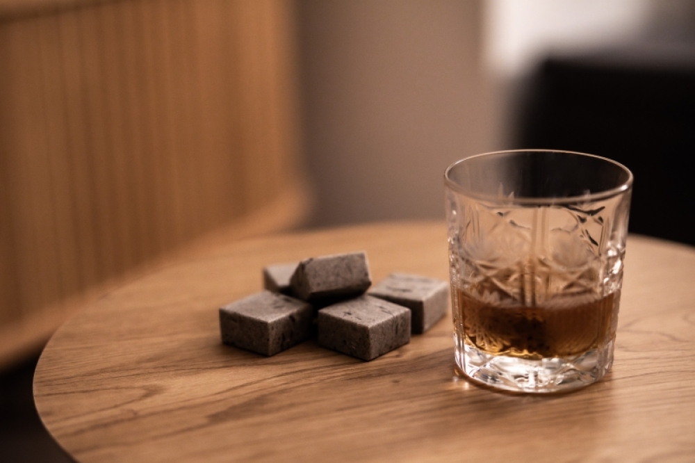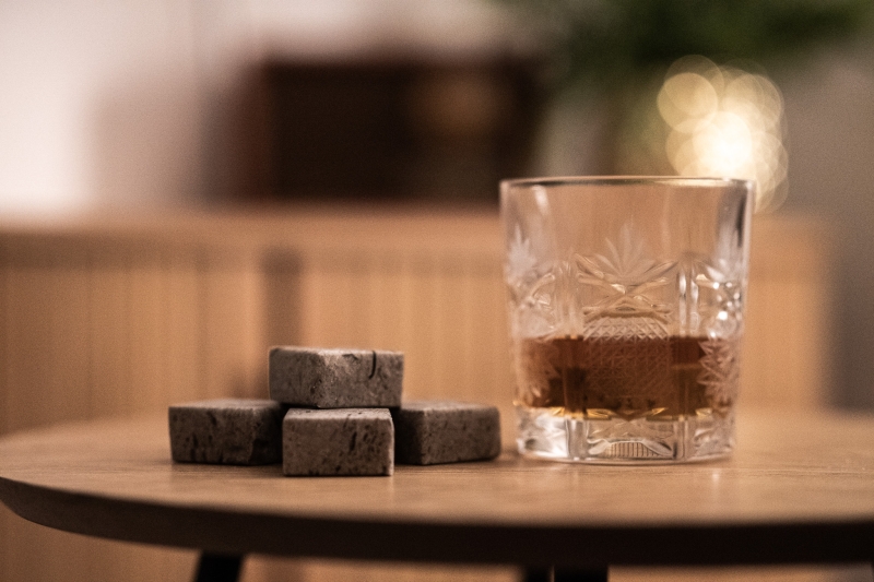 Kamnite kocke iz naravnega kamna poskrbijo za učinkovito hlajenje žganih pijač brez razredčitve.