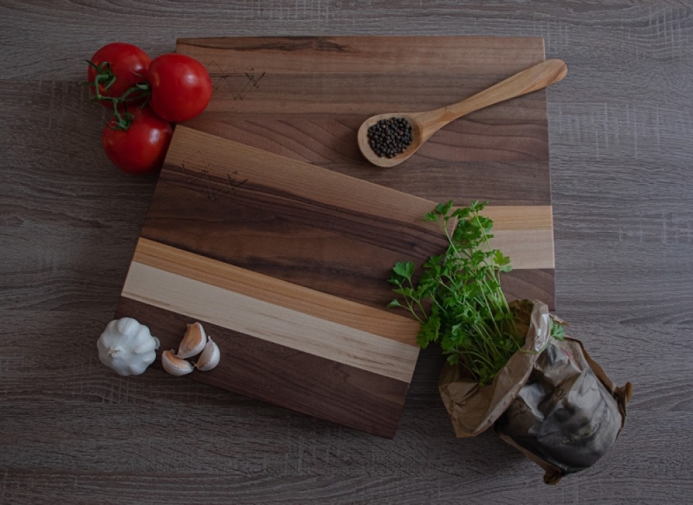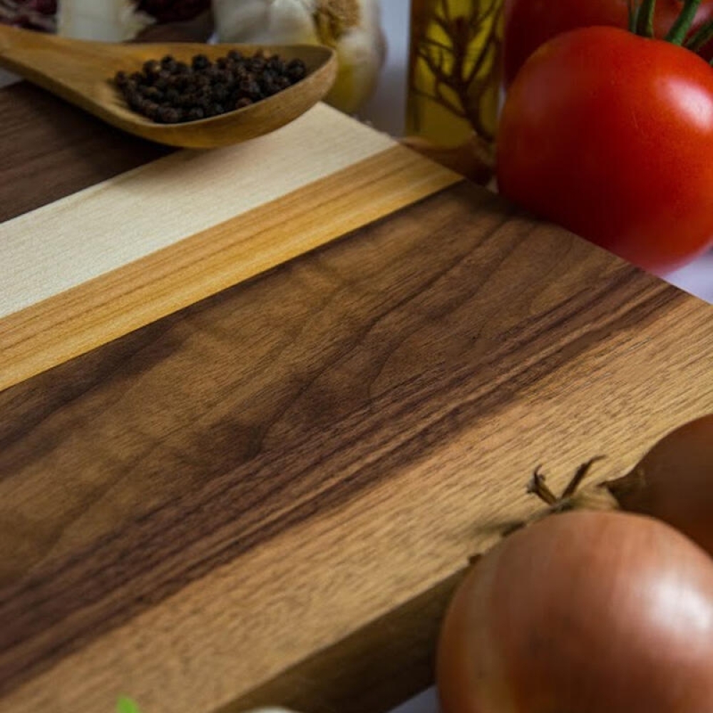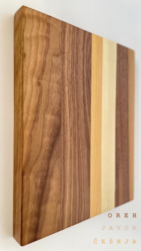 Naše orehove, Edge grain kuhinjske deske so izdelane iz najkakovostnejšega oreha, z dodatkom češnje ter javorja. S tem čudovitim vzorcem naravnega lesa, bo ta rezalna deska dodala pridih elegance vašemu kuhinjskemu dekorju. Deske ponujajo dovolj prostora za sekljanje, rezanje ali serviranje različnih živil in jedi, medtem ko njihova čvrsta konstrukcija zagotavlja, da se sčasoma ne bodo zvile ali počile. Prav tako pa zaradi postavitve rastja lesa ohranjajo rezilo vašega noža ostro dlje časa.