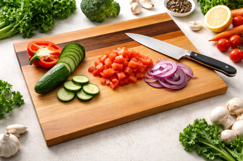 Varnost nožev: Na deski za rezanje vedno uporabljajte ostre nože. Topi noži lahko zahtevajo več sile za rezanje, kar poveča tveganje za poškodbe. Bodite previdni in uporabljajte ustrezne tehnike rezanja, da preprečite nesrečo.